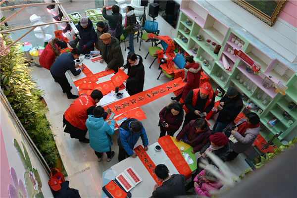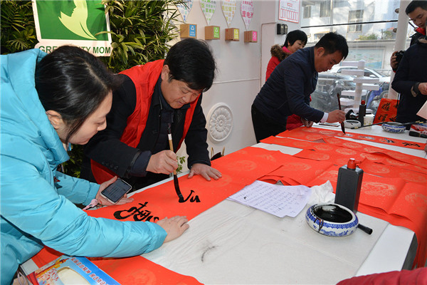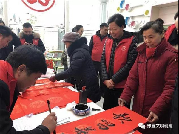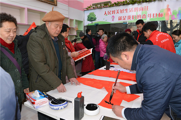 在“迎新春、送春聯(lián)”活動(dòng)現(xiàn)場(chǎng),書法家們揮毫潑墨,為廣大黨員群眾書寫春聯(lián),吸引了多名書法愛好者現(xiàn)場(chǎng)求教;黨員群眾們拿著剛寫好的還飄著墨香的春聯(lián),欣賞、贊嘆、感謝聲不絕于耳。