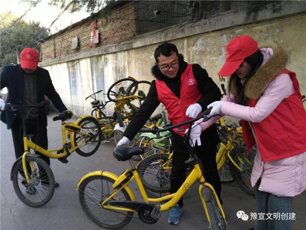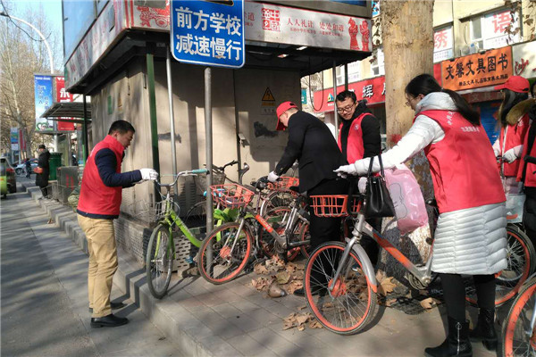 志愿者們冒著寒風(fēng)和低溫,清理家屬院里違規(guī)停放小黃車,并引導(dǎo)社區(qū)居民講文明、樹新風(fēng),養(yǎng)成良好的行為習(xí)慣。經(jīng)過一個(gè)多小時(shí)的勞動(dòng),雖然手都凍紅了,但看到近百輛擺放的整整齊齊的單車和井然有序的院子,大家都有滿滿的成就感,也體會(huì)到了奉獻(xiàn)的快樂。